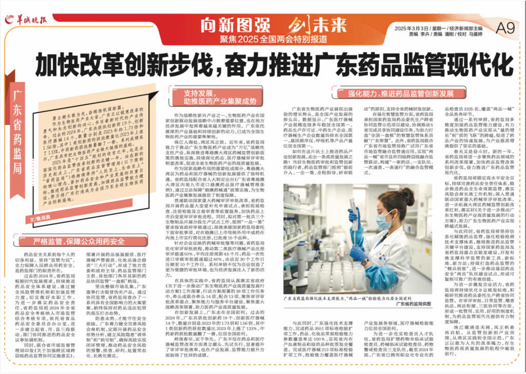 2025年是“十四五”规划的收官之年,也是全面深化药品监管改革创新的关键一年。站在新的历史起点上,广东省药品监督管理局(以下简称“省药监局”)将继续秉持“人民至上、生命至上”的核心理念,紧扣药品安全和产业发展的双重目标,推进药品监管创新发展,加强药品监管能力建设,努力将广东打造成为全国乃至全球生物医药产业的新高地。